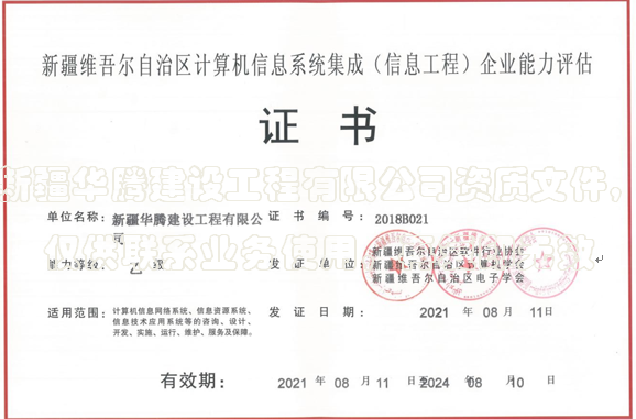 新疆維吾爾自治區(qū)計(jì)算機(jī)信息系統(tǒng)集成企業(yè)證書