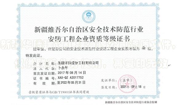 安防工程企業(yè)資質(zhì)等級(jí)證書